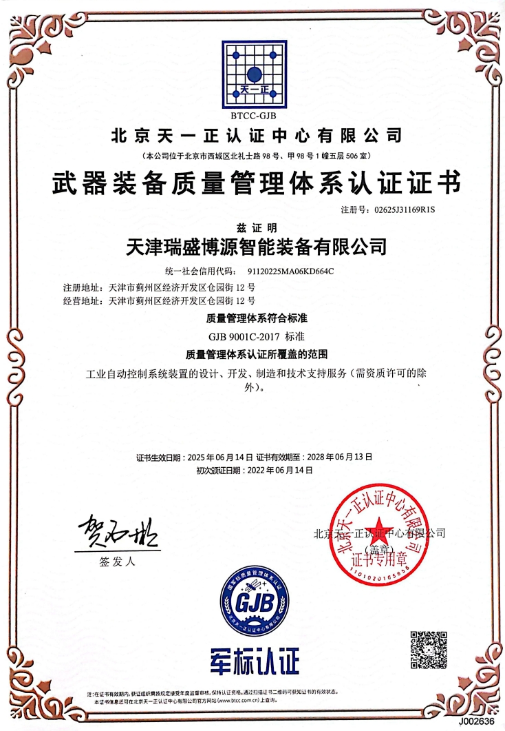 武器装备质量管理体系认证证书(注册号:02625J31169R1S)