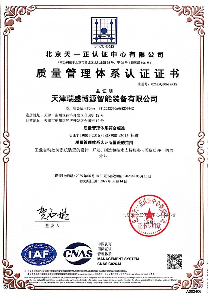 质量管理体系认证证书(注册号:02625Q30688R1S)